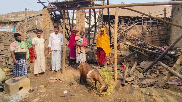 पाकुड़। सदर अंचल के ईलामी पंचायत के मध्य टोला में शनिवार की देर रात सेहरी के लिए भोजन बनाने के दौरान एक घर में भीषण आग लग गई। जिससे घर पूरी तरह से जलकर राख हो गया। आग इतकी भयावह थी कि घर में रखे सारे सामान जलकर बर्बाद हो गए और एक भी सामान नहीं बचा। पूरा परिवार सड़क पर आ गया है। घर में रख खाने के सामानों में दाल, चावल सहित अन्य राशन, फसल सबकुछ जल गया। पहनने के कपड़े, सोने के लिए बिस्तर, खटिया, पलंग और भोजन बनाने के बर्तन भी जलकर बर्बाद हो गए। इतना ही नहीं आग लगने से घर में रखें कम से कम 30 से 35 हजार रुपए भी जल गए। इसके अलावा कुछ जेवर भी जल गए, जो घटना के बाद से नहीं मिल रहा है। हालांकि किस्मत अच्छी रही कि पूरा परिवार आग की चपेट में आने से बाल-बाल बच गए। जिस वक्त घटना हुई उस वक्त घर के सदस्य सोए हुए थे। किसी तरह भाग कर सभी ने जान बचाई। मकान मालिक युसूफ शेख ने बताया कि रमजान का महीना चल रहा है और घर में रोजेदारों के लिए सेहरी के लिए भोजन बनाने के दौरान घटना घटी है। पत्नी भोजन बनाने के लिए गैस चूल्हा जला रही थी। तभी अचानक से आग भड़क उठी। इस घटना में लाखों रुपए का नुकसान हुआ है। एक भी सामान नहीं बचा है। जिससे मेरा पूरा परिवार सड़क पर आ गया है। उन्होंने कहा कि किस्मत अच्छी रही कि घटना में परिवार के किसी सदस्य को शारीरिक रूप से नुकसान नहीं पहुंचा। जिस तरह से अचानक ही पल भर में आग ने पूरे घर को आगोश में ले लिया, उससे हमें शारीरिक रूप से भी बड़ा नुकसान होने का खतरा था। अल्लाह ताला का शुक्र है कि घर के सारे सदस्य आग के चपेट में आने से बाल-बाल बच गए। मकान मालिक युसूफ शेख की पत्नी आसनारा बीवी ने बताया कि रात करीब 2:00 बजे सेहरी में भोजन बनाने के लिए गैस चूल्हा जलाने गई, तभी अचानक से आग भड़क उठी। देखते ही देखते पूरा घर आग की चपेट में आ गया। आस-पास के लोग हल्ला सुनकर दौड़े-दौड़े आए और आग को बुझाने लगे। काफी मशक्कत के बाद आग पर काबू पाया गया। लेकिन तब तक सब-कुछ जलकर खाक हो चुका था। इधर घटना की खबर मिलते ही मुखिया अब्दुस समद पीड़ित परिवार से मिलने पहुंचे। उन्होंने घटना का जायजा लिया और परिवारों से जानकारी ली। मुखिया अब्दुस समद ने पीड़ित परिवार को ढांढस बंधाया और हर संभव सहयोग का भरोसा दिलाया। उन्होंने अंचल कार्यालय के अधिकारियों से भी बात की और सरकारी मदद के लिए अनुरोध किया। मुखिया अब्दुस समद ने पीड़ित परिवार को तत्काल व्यक्तिगत रूप से आर्थिक मदद भी पहुंचाई। उन्होंने कहा कि घटना में लाखों का नुकसान हुआ है। मैंने अंचल कार्यालय से बात की है और अपने स्तर से सहयोग किया है। आगे सरकारी प्रावधान के मुताबिक जो भी सहयोग होगा, इसके लिए मैं खुद पहल करूंगा। मुखिया ने कहा कि घटना की जानकारी स्थानीय विधायक को भी दी गई है।