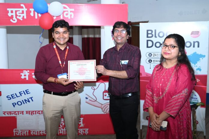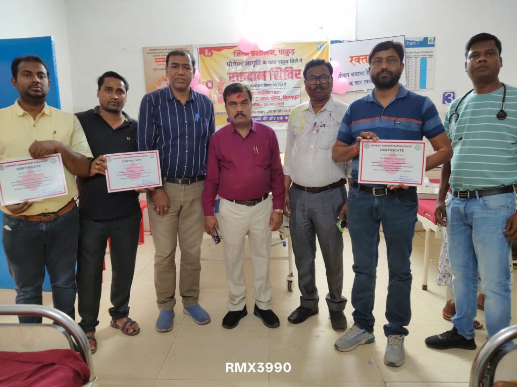 शिविर में जिला एवं प्रखंड स्तरीय पदाधिकारी, कर्मचारी एवं बड़ी संख्या में आम नागरिकों ने स्वेच्छा से भाग लेकर समाज सेवा की प्रेरणादायक मिसाल पेश की। कुल 64 रक्तदाताओं ने इस पुनीत कार्य में सहभागिता की।उपायुक्त मनीष कुमार ने कहा, “रक्तदान महादान है, क्योंकि इससे अनगिनत जिंदगियाँ बचाई जा सकती हैं। प्रत्येक व्यक्ति को इस पवित्र कार्य में बढ़- चढ़कर भाग लेना चाहिए।”उन्होंने यह भी कहा कि जिले की जनसंख्या के कम से कम एक प्रतिशत के बराबर रक्त यूनिट ब्लड बैंक में हर समय उपलब्ध रहना चाहिए, ताकि आपात स्थिति में किसी भी जरूरतमंद को रक्त की कमी न हो। उन्होंने जानकारी दी कि प्रोजेक्ट जागृति के अंतर्गत जिले में प्रत्येक माह की 24 तारीख को सभी प्रखंडों में नियमित रूप से रक्तदान शिविर आयोजित किए जाएंगे, जिससे रक्त की उपलब्धता सुनिश्चित हो सके और समाज में सेवा एवं सहभागिता की भावना को प्रोत्साहन मिले।कार्यक्रम के दौरान उपायुक्त द्वारा रक्तदाताओं को प्रमाणपत्र प्रदान कर उनका उत्साहवर्धन भी किया गया।