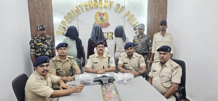 पाकुड़। मुफस्सिल थाना क्षेत्र के लखनपुर गांव में पत्थर व्यवसाई की गोली मारकर हत्या के मामले में तीन अंतर्राज्यीय हथियार सप्लायर को गिरफ्तार किया गया है। अंतर्राज्यीय हथियार सप्लायर गिरोह के जिन तीन सदस्यों को गिरफ्तार किया गया है, उनमें सदाकाश शेख (35 वर्ष), रफिकुल शेख (32 वर्ष) तथा अमन कुमार (20 वर्ष) शामिल हैं। इनमें सदाकाश शेख और रफिकुल शेख पाकुड़ मुफस्सिल थाना क्षेत्र के ही शाहबाजपुर गांव का रहने वाला है। अमन कुमार बिहार पटना के मेहंदीपुर थाना क्षेत्र के अमरपुर नया टोला का निवासी है। अमन महेशपुर थाना क्षेत्र के शहरग्राम हटिया पाड़ा में मंटू साह के घर में किराए के मकान पर रह रहा था। पुलिस ने तीनों के पास से मैगजीन सहित एक पिस्तौल,एक देसी कट्टा और दो जिंदा कारतूस बरामद किया है। पुलिस के लिए यह बड़ी सफलता मानी जा रही है। पुलिस ने गोली कांड के दो मुख्य आरोपी की गिरफ्तारी के बाद घटना से जुड़े हथियार सप्लायर का खुलासा करते हुए यह सफलता पाई है।अनुमंडल पुलिस पदाधिकारी दयानन्द आजाद ने बताया कि रफिकुल शेख का आपराधिक इतिहास रहा है। पश्चिम बंगाल के मुर्शिदाबाद जिले के सूती थाना में रफिकुल शेख के खिलाफ आर्म्स एक्ट के तहत कांड संख्या 502/19 दर्ज है। यह कांड 30 सितंबर 2019 को दर्ज किया गया था।अनुमंडल पुलिस पदाधिकारी दयानन्द आजाद ने शुक्रवार को प्रेस कांफ्रेंस कर जानकारी दी। उन्होंने बताया कि गत 31 अक्टूबर को लखनपुर गांव में पत्थर व्यवसाई मकबूल शेख की गोली मारकर हत्या कर दी गई थी। इस मामले में घटना की रात को ही आरोपी ललन शेख और दानारूल शेख को गिरफ्तार किया गया था। एसडीपीओ ने बताया कि 6 नवंबर को ललन शेख को पुलिस रिमांड पर लिया गया था। इस घटना में प्रयुक्त किए गए हथियार को लेकर पूछताछ की गई। पूछताछ में ललन शेख के अपने स्वीकारोक्ति बयान के आधार पर तीन अंतर्राज्यीय हथियार सप्लायर को गिरफ्तार किया गया है।इस खुलासे के लिए एसडीपीओ डीएन आजाद के नेतृत्व में एक विशेष टीम का गठन किया गया था।जिसमें मुफस्सिल थाना प्रभारी गौरव कुमार, महेशपुर थाना प्रभारी रवि शर्मा, मुफस्सिल थाना के एसआई अजय कुमार उपाध्याय,एसआई अंशु कुमार उपाध्याय,एसआई अरविंद कुमार मंडल, तकनीकी शाखा प्रभारी एसआई संजीव कुमार झा मुख्य रूप से शामिल किए गए थे।