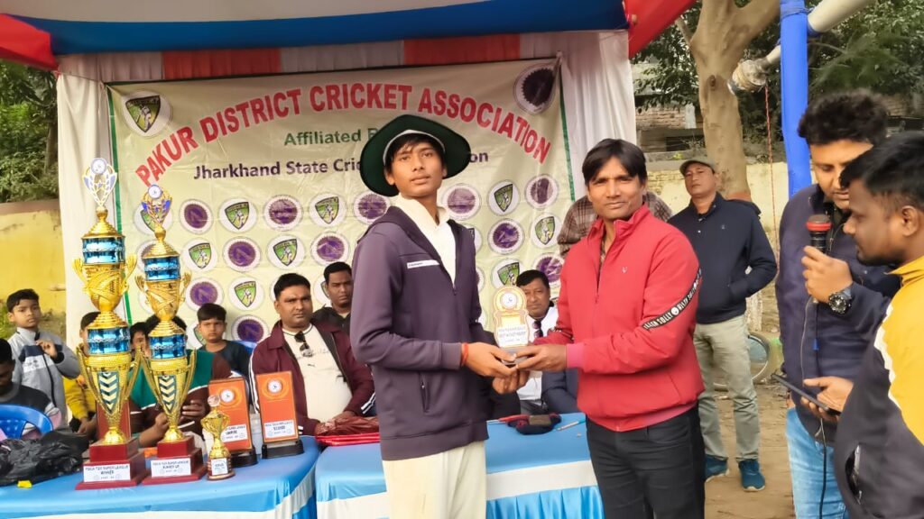 पीएस एकेडमी की ओर से बेहतरीन बल्लेबाजी करने वाले युसूफ शेख मैन ऑफ द मैच चुने गए। उन्होंने 48 गेंद में चार गगनचुंबी छक्के और 9 चौकों की मदद से ताबड़तोड़ 74 रनों की शानदार पारी खेली। इससे पहले पीएस एकेडमी ने टॉस जीतकर बल्लेबाजी करने का निर्णय लिया। पहले बल्लेबाजी करते हुए पीएस एकेडमी ने निर्धारित 20 ओवरों में पांच विकेट गंवाकर 208 रन बनाएं। इसके जवाब में राइजिंग क्रिकेट क्लब की टीम 20 ओवर में 7 विकेट खोकर 166 रन ही बना पाई। पीएस एकेडमी की ओर से सोबुर शेख ने भी बेहतरीन बल्लेबाजी का प्रदर्शन किया। उन्होंने दो छक्के और 9 चौकों की मदद से 45 गेंदों में 72 रन बनाएं। इधर राइजिंग क्लब की ओर से प्रभात कुमार ने 47 रनों की पारी खेली। उन्होंने 30 गेंदों का सामना किया और चार चौके तथा चार छक्के भी लगाए। इधर पीएस एकेडमी की ओर से शानदार गेंदबाजी करते हुए अख्तरुल शेख ने अपने स्पेल के चार ओवर की गेंदबाजी में 45 रन देकर तीन महत्वपूर्ण विकेट चटकाएं। वहीं राइजिंग क्लब की ओर से मुकेश साह ने तीन और निखिल दास ने दो विकेट लिए। पूरे टूर्नामेंट में बेहतरीन प्रदर्शन करने वाले गौरव घोष को मैन ऑफ द सीरीज चुना गया। जबकि सर्वश्रेष्ठ गेंदबाज शुभम कुमार और सर्वश्रेष्ठ विकेट कीपर अर्जुन गोस्वामी को चुना गया। आयोजित टूर्नामेंट के फाइनल में विजेता टीम एवं अन्य खिलाड़ियों को पाकुड़ जिला क्रिकेट संघ के सचिव प्रणय तिवारी, कोषाध्यक्ष गणपत सिंह, गौरव चौधरी, सोमेन घोष, सोना दास, अर्जुन सिंह, रणवीर सिंह, श्रीपाद कुमार ने पुरस्कार प्रदान किया।