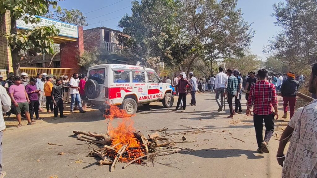पाकुड़। शहर के गांधी चौक के पास सड़क दुर्घटना में एक युवक की मौत के बाद बवाल मच गया। मृतक युवक की पहचान शहर के तलवाडांगा के मृदुल कुमार चंद्र के रूप में की गई। उस वक्त मृदुल स्कूटी से गुजर रहा था। इसी दौरान एक स्कूल बस ने उसे कुचल दिया। जिससे उसकी दर्दनाक मौत हो गई। वहीं घटना के बाद चालक बस लेकर वहां से फरार हो गया। बाद में पता चला कि वह बस दिल्ली पब्लिक स्कूल की थी। इस घटना से लोग आक्रोशित हो उठे और घटना के विरोध में जमकर बवाल मचाया। शहर की दुकानों को बंद करा दिया। गांधी चौक से लेकर रेलवे फाटक, बस स्टैंड, भगत पाड़ा, हाटपाड़ा, बड़ी अलीगंज बस स्टेण्ड सहित पूरे शहर में घूम-घूम कर दुकानों को बंद कराने का प्रयास किया गया। इस दौरान पूरे सड़क पर जगह-जगह ईंट, पत्थर बरसाए गए और सड़क पर बांस-बल्ली, लोहे की पाइप रख कर जाम कर दिया गया। एंबुलेंस को छोड़कर तमाम तरह के वाहनों की आवाजाही रोक दी गई। जिससे आम लोगों को काफी ज्यादा परेशानियों का सामना करना पड़ा। नगर थाना के सामने पहुंच कर सैंकड़ों की संख्या में लोगों ने प्रशासन के खिलाफ प्रदर्शन किया। वहीं थाना के सामने सड़क पर आगजनी भी की गई। इसी दौरान जब लोगों को पता चला कि युवक की मौत दिल्ली पब्लिक स्कूल (डीपीएस) के बस से हुई है, तो सैंकड़ों की तादाद में लोग स्कूल के पास पहुंच गए। इसकी भनक लगते ही स्कूल प्रशासन की तरफ से दोनों गेट को बंद कर ताला जड़ दिया गया। ताकि स्कूल को किसी तरह का नुकसान नहीं पहुंचे। इधर स्कूल पहुंचने के बाद गेट के सामने भीड़ ने जमकर बवाल मचाया। यहां भी सड़क पर आगजनी की गई।